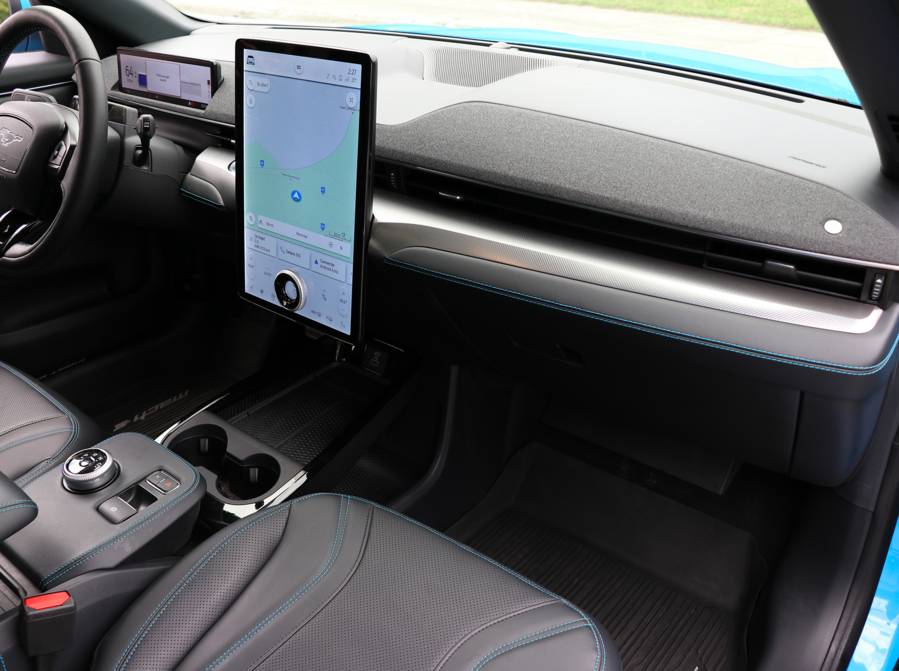 Le style de l’habitacle est très réussi. Plus traditionnel dans son ensemble que celui du Tesla, il fait tout de même la belle part à l’écran central de 15,5 po.
