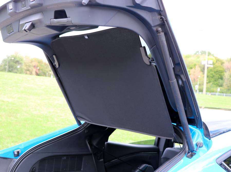 Le cache-bagages est une simple toile mince fixée à la porte du coffre.