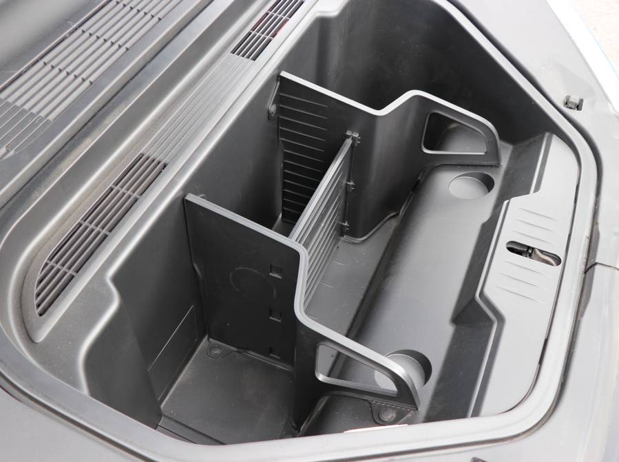 Le coffre avant est livré avec des compartiments qui limitent la taille des objets qu’on voudrait y placer.