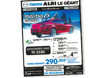Vrai, le prix «tout inclus» a apporté certaines améliorations dans les publicités des autos neuves. Il n’a cependant pas éliminé tous les écueils: plusieurs annonces portent toujours à confusion et cachent souvent des pièges qui exigeraient une intervention plus musclée de l’Office de la protection du consommateur. Voici l’analyse de quelques exemples « créatifs» que nous avons recensés en janvier et février 2011.