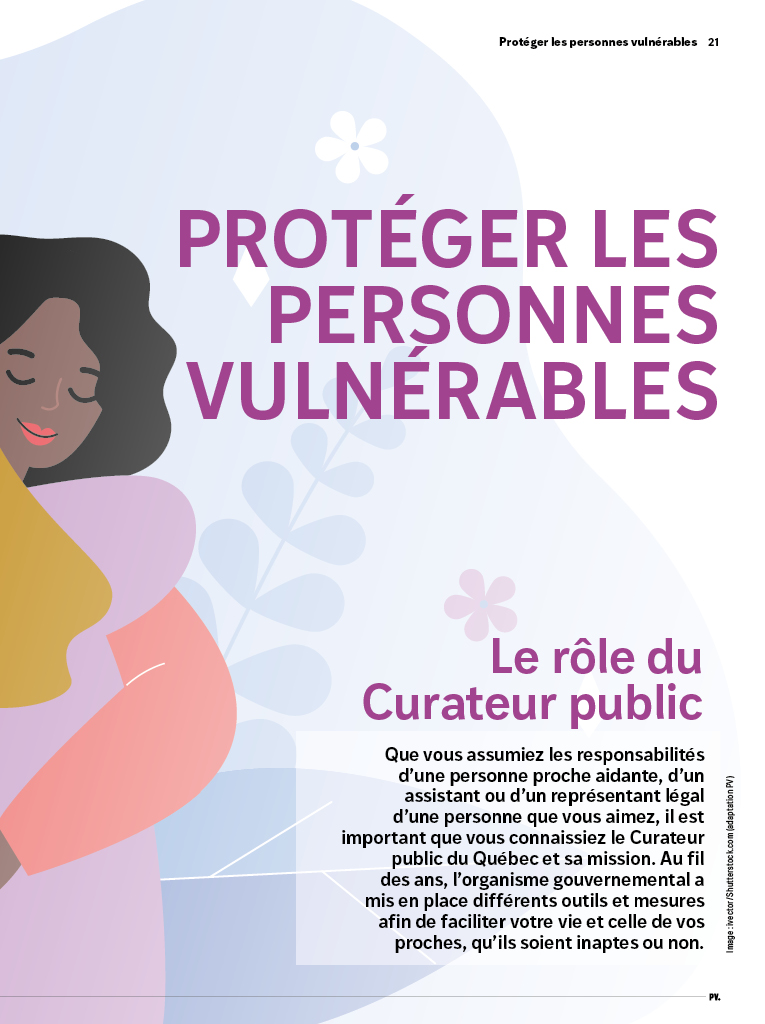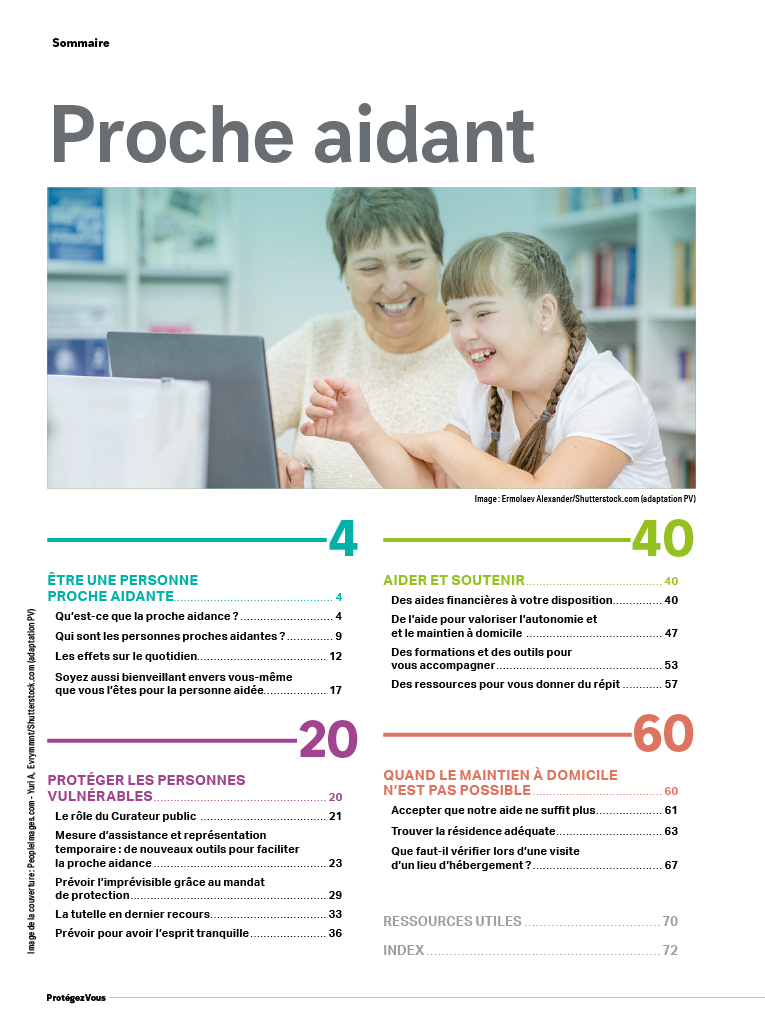 Ce guide réalisé en collaboration avec le Curateur public du Québec et le ministère de la Santé et des Services sociaux, se veut un outil pratique spécialement conçu pour les personnes proches aidantes.