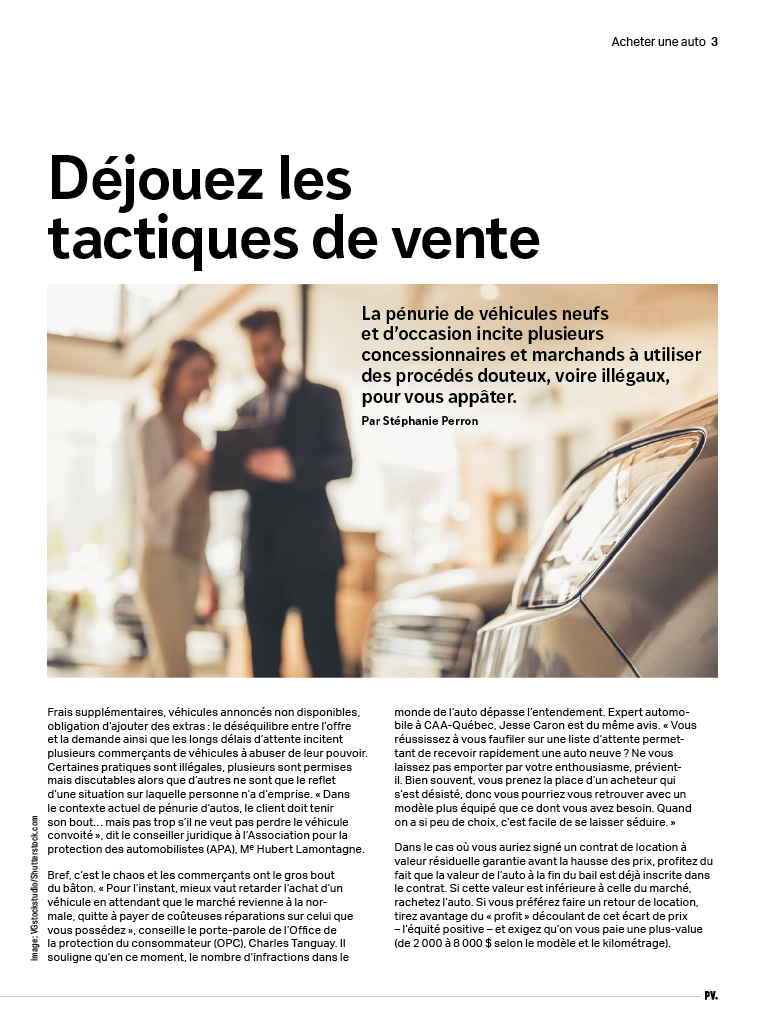Avec la pénurie de véhicules, de nombreux concessionnaires et marchands de véhicules d’occasionsont utilisent des procédés douteux, voire illégaux, pour appâter les consommateurs, voyez comment les déjouer.