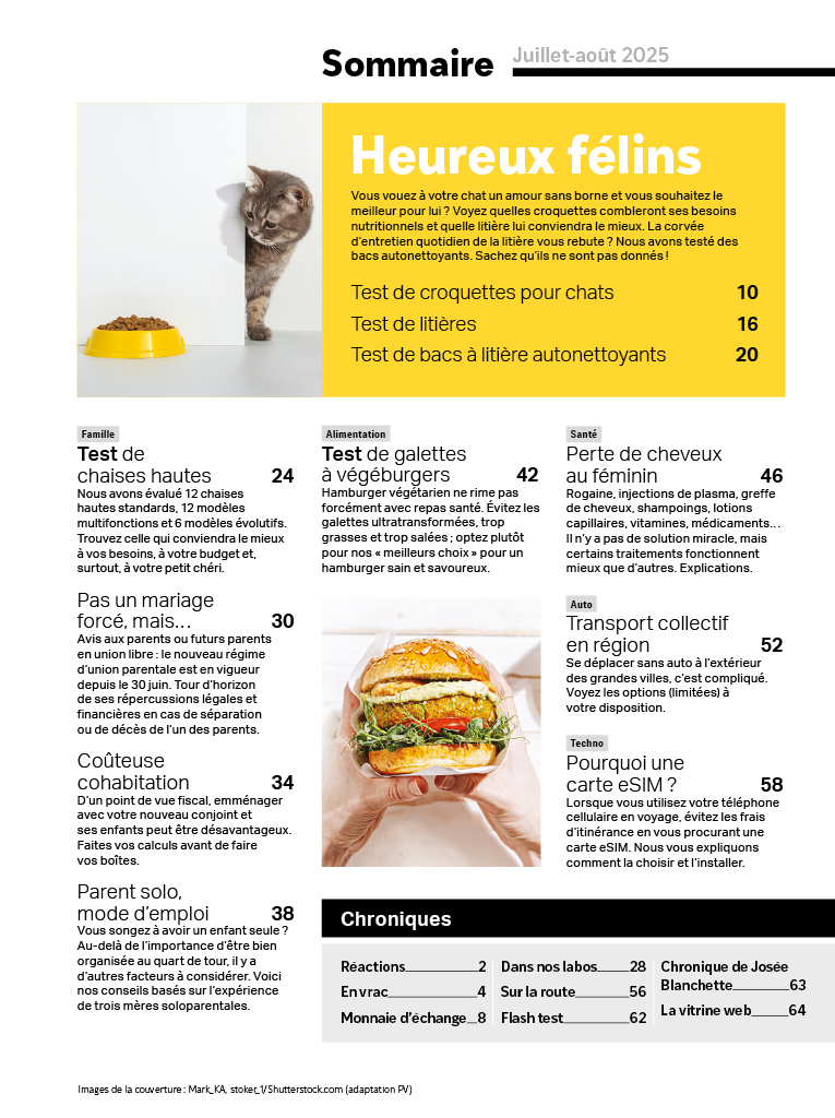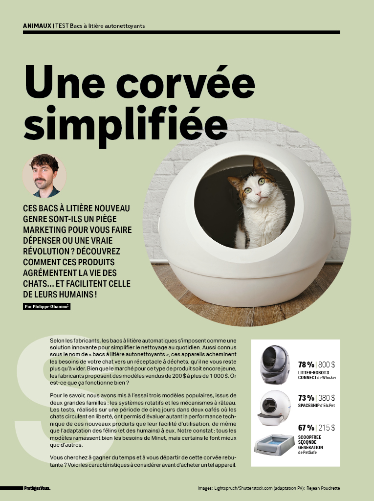 Vous voulez le meilleur pour votre chat? Voyez quelles croquettes combleront ses besoins nutritionnels, et découvrez les meilleures litières de notre test. À lire aussi, notre évaluation de trois bacs à litière autonettoyants : une solution pratique, mais pas donnée!