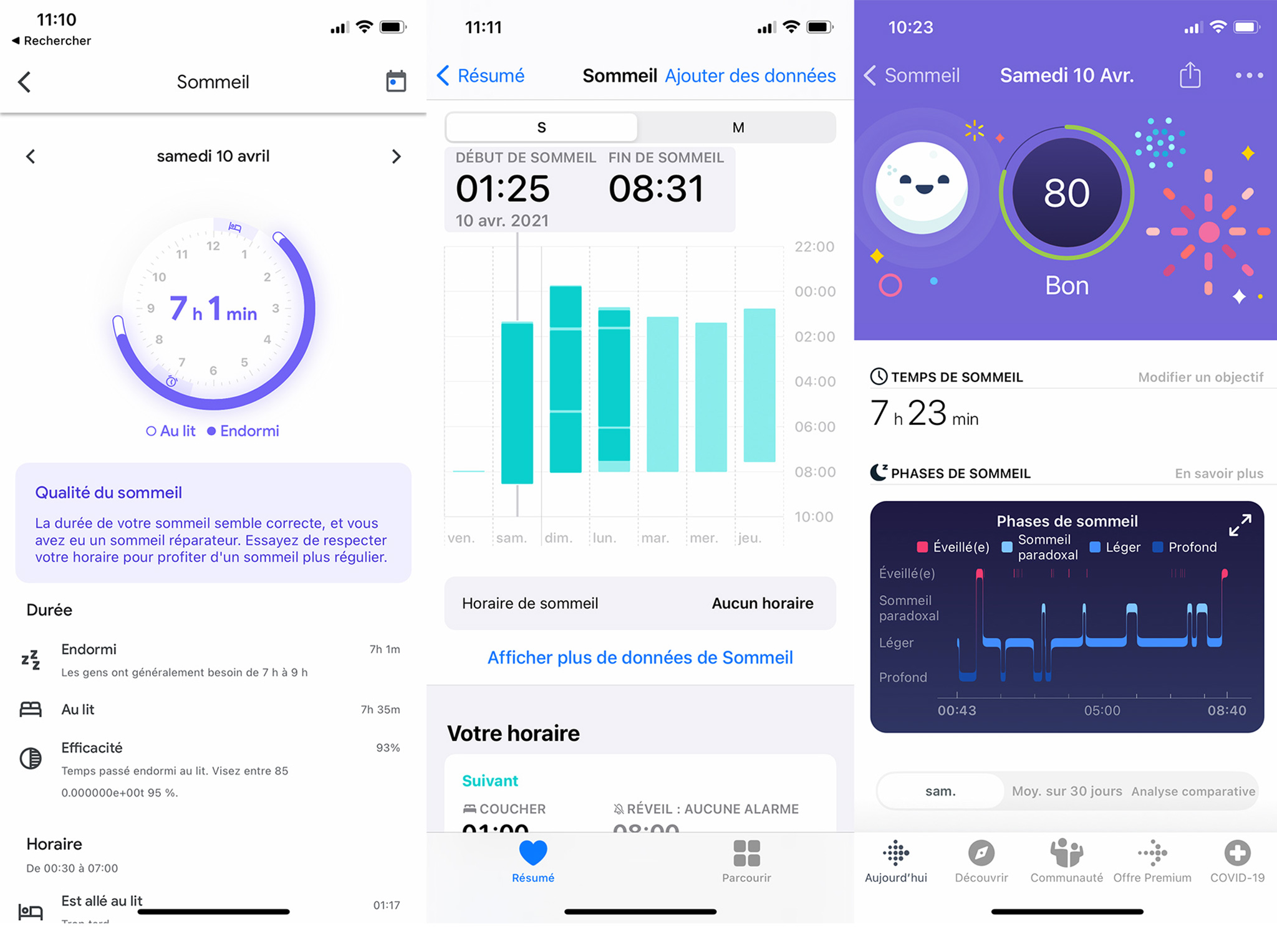 L’Apple Watch Series 5 offrait pour sa part moins d’informations que les autres (la Series 6 devrait toutefois être mieux, avec son capteur d’oxygène sanguin qui indique la présence possible d’apnée du sommeil), mais c’est une montre complète pour le jour. Je ne l’achèterais pas spécifiquement pour mesurer mon sommeil, mais, tant qu’à l’avoir, aussi bien l’utiliser la nuit.