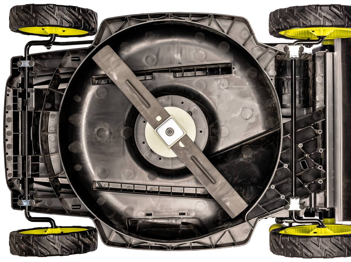 - Modes de tonte : ensachage et éjection latérale ainsi que déchiquetage