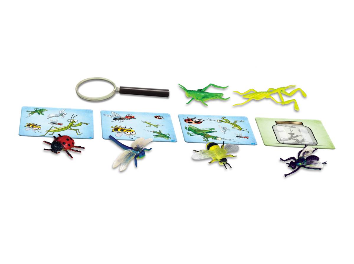 Jeu d’observation et de rapidité qui plaira aux amateurs d’insectes. Il a été conçu en collaboration avec l’orthopédagogue québécoise Laurence Côté. L’enfant doit observer les cartes de jeu pour déterminer lequel des 6 insectes n’y est pas, y associer la figurine-insecte manquante et s’emparer de la loupe le plus rapidement possible pour vérifier sa réponse.