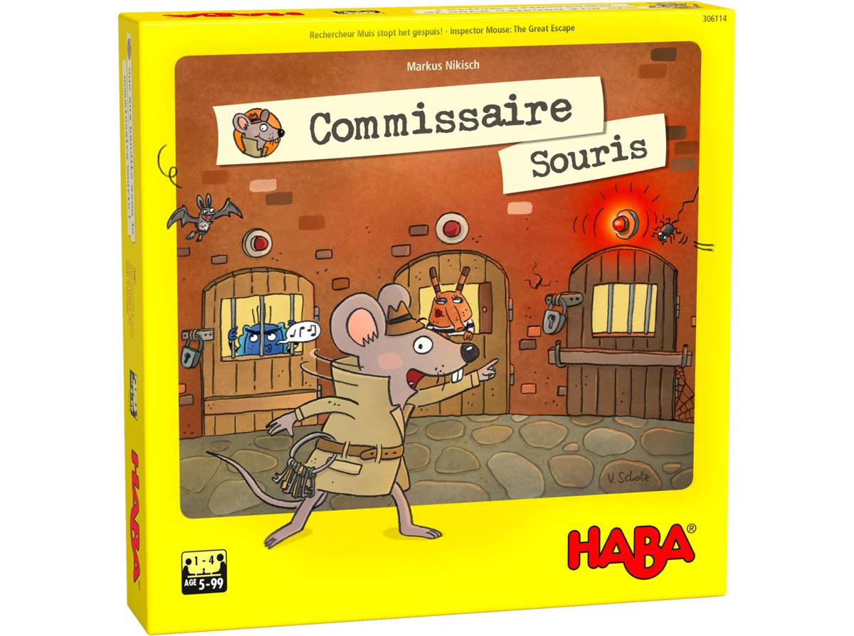 Jeu de mémoire coopératif dans lequel les joueurs aident le commissaire Souris à contrer une tentative d’évasion de bandits. À chaque tour, un joueur dépose un vilain dans une cellule vide et fait tourner la prison dans le sens indiqué par le dé. Lorsque « l’alarme » retentit, les joueurs parient sur le possible fugitif, qui est capturé si l’un d’entre eux a bien deviné. Sinon, le vilain est placé dans l’auto, qui contient 4 sièges. Mais lorsque celle-ci est pleine, les joueurs perdent la partie. Propose 3 variantes et un mode solo.