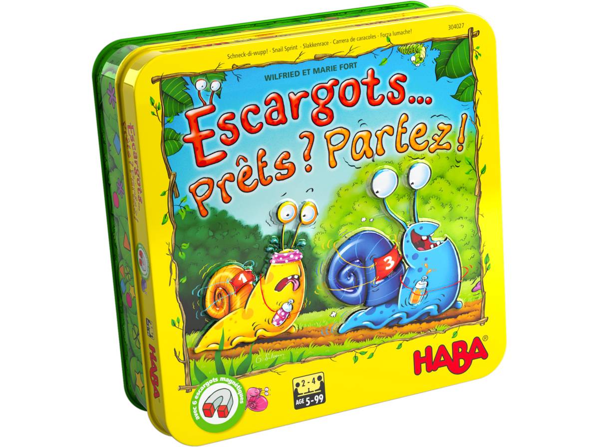 Commentaires des familles/experts: Jeu original par son parcours magnétique en 3D qui commence sur la table et monte sur la boîte. Couleurs vives et images rigolotes. Un jeu réussi, simple et amusant. « Charles-William l’adore ! », constate sa maman, Stéphanie. « Très beau jeu à jouer en famille pour le bonheur de tous », poursuit-elle. « Excellent jeu de course, captivant et différent. Le fait que les escargots peuvent s’empiler est amusant et rend le dénouement de la course inattendu », déclare Mélissa, la mère de Mathéo et de Louka. « Très bonne qualité des matériaux, ce qui donne une très grande durabilité au jeu. Le dé et les escargots sont en bois, la boîte est en métal », ajoute Mélissa.