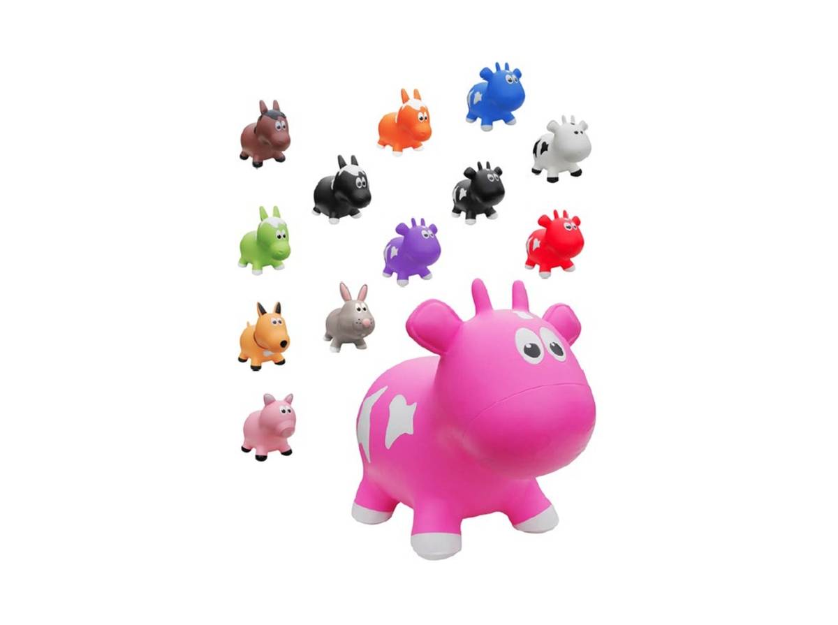 Vache en caoutchouc de 50 x 30 cm de hauteur. L’enfant s’y assoit et avance en sautant. Comprend une pompe pour gonfler le jouet.