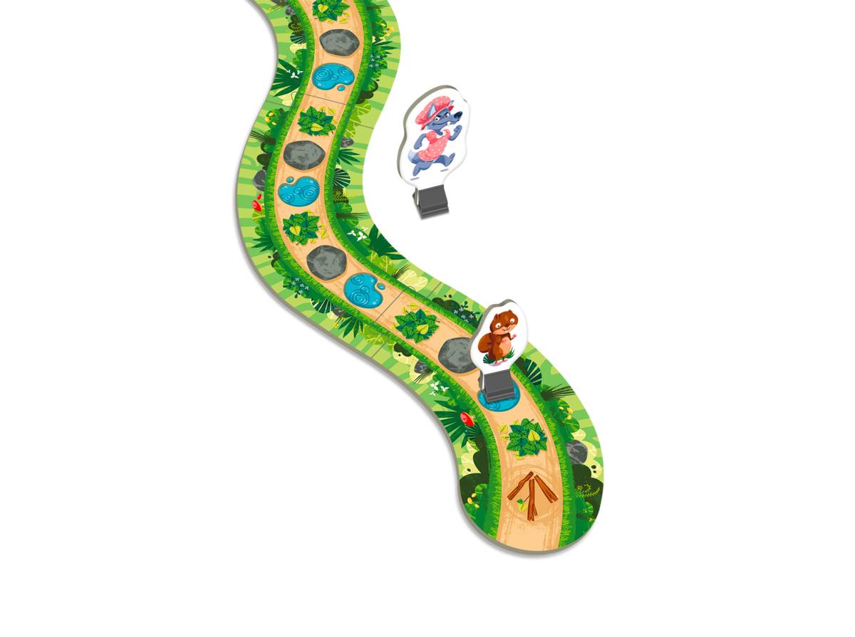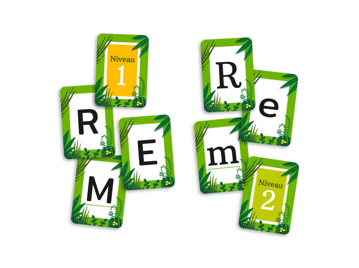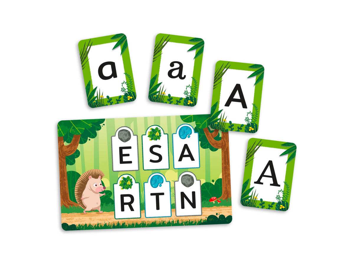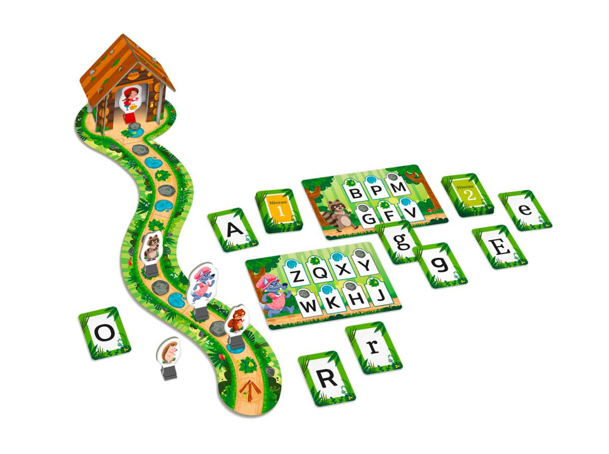 Jeu pédagogique et coopératif sur les lettres de l’alphabet. À son tour, l’enfant retourne une carte-lettre. Chaque joueur observe son plan de jeu. Si la lettre est inscrite sur son plateau, il avance son pion sur le sentier jusqu’au symbole correspondant. Tous les joueurs gagnent si l’un d’eux atteint la cabane du Petit Chaperon rouge avant le méchant loup. Comprend 144 cartes-lettres (majuscules, minuscules et calligraphie différente). Propose 2 niveaux de difficulté et 2 variantes.
