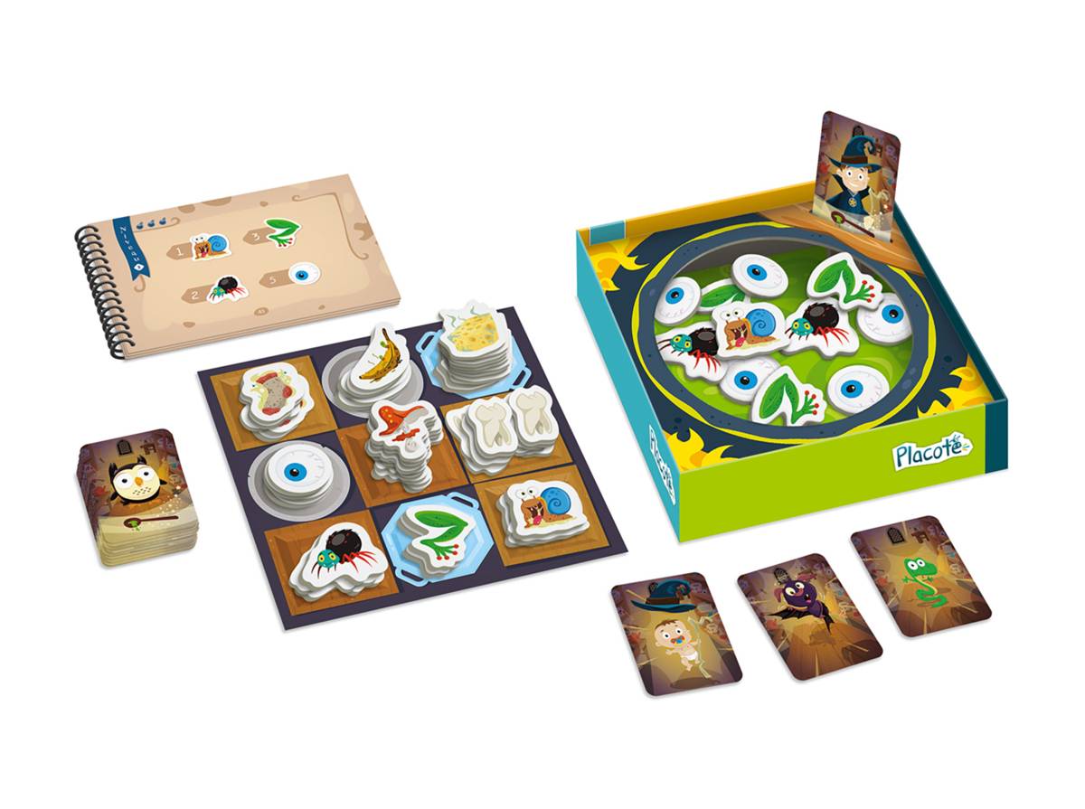 Commentaires des familles/experts: Ingrédients rigolos, illustrations colorées, bien réussies et farfelues de monstres et autres bêtes maléfiques qui attirent l’attention des enfants et les motivent dans leurs apprentissages. Le jeu propose 4 niveaux de difficulté, permettant aux enfants d’une même famille d’y participer même s’ils sont de niveaux différents. Laura (5 ans) et Victoria (3 ans) aiment beaucoup ce jeu, raconte leur maman : « Les transformations causées par leurs potions les font toujours bien rigoler. » La présence d’un adulte ou d’un enfant qui sait compter est nécessaire. Vous aurez besoin d’une cuillère, non comprise, pour brasser la potion.