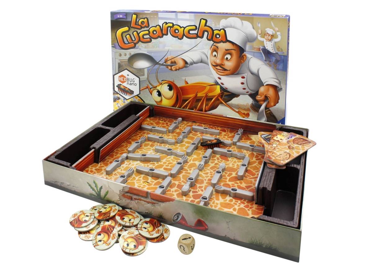 our 2 à 4 joueurs. Comprend 24 ustensiles, 18 jetons-cafards, un dé, un insecte HexBug nano, etc. La boîte sert de plan de jeu. Un joueur lance le dé pour déterminer quel ustensile il doit faire pivoter pour attirer l’insecte. S’il réussit, il gagne un jeton-cafard. Celui qui en accumule le plus gagne.