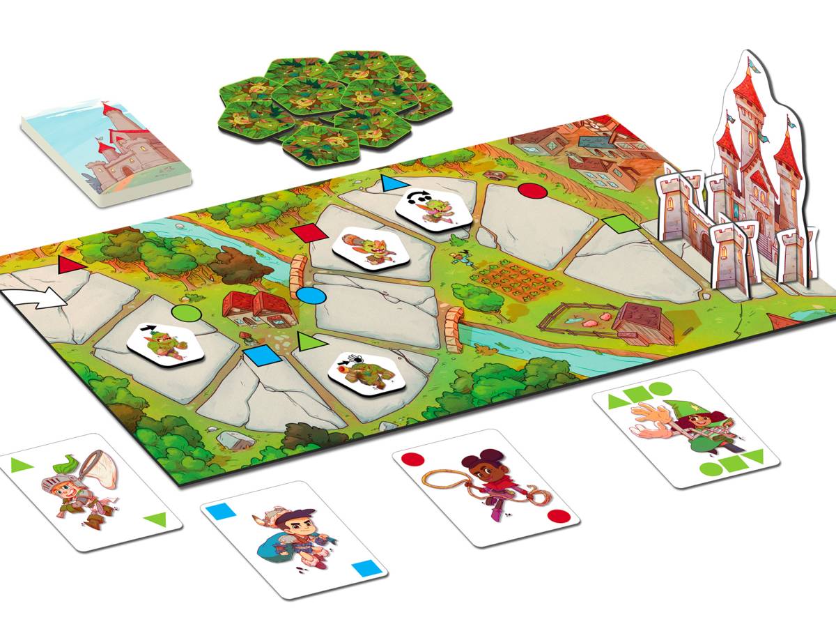 Jeu de société coopératif dans lequel les joueurs défendent leur château contre une attaque de monstres. À tour de rôle, ils pigent une carte sur laquelle se trouve une forme géométrique colorée. Si la forme et la couleur correspondent à une case du plateau où se trouve un monstre, ce dernier est envoyé au donjon. La partie est gagnée lorsque tous les monstres sont capturés. Propose 4 variantes et un mode solo.