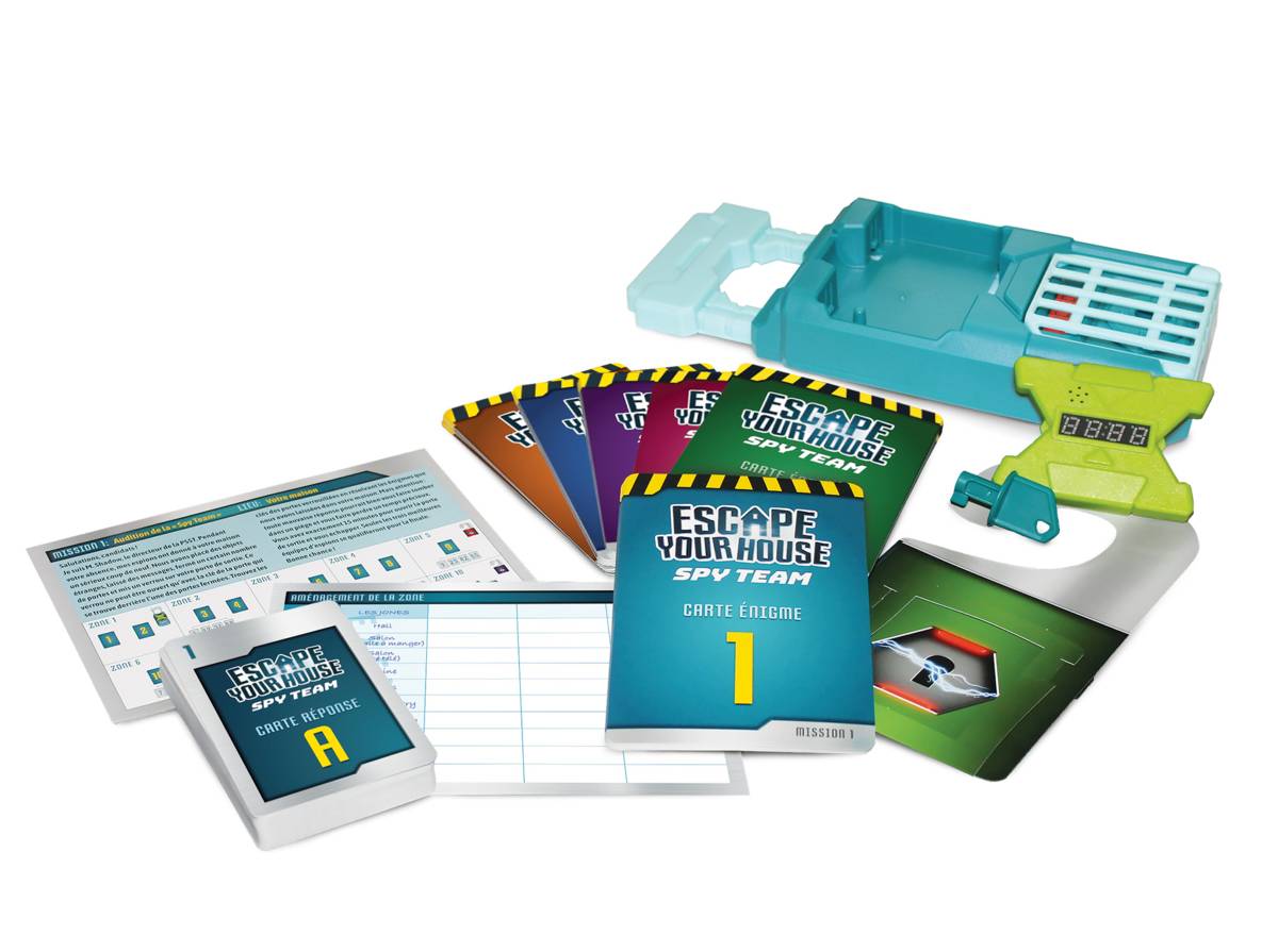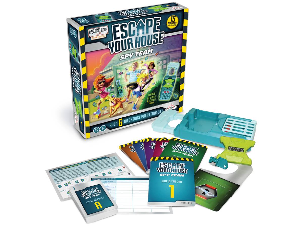 Dans ce jeu d’énigmes coopératif, les joueurs incarnent les recrues d’une agence d’espionnage qui doivent s’évader de leur maison. Au début de la partie, les joueurs choisissent l’une des 6 missions puis déterminent les 10 zones de jeu dans la maison (chambre, cuisine, salon, etc.). Dans chacune des zones sont déposées des cartes Énigme et Réponse selon les règles. Quand tout est prêt, un des joueurs lance le minuteur de 15 minutes et tous peuvent se déplacer dans les différentes zones pour consulter les cartes Énigme. Cependant, les joueurs ne peuvent pas entrer dans une zone sur laquelle se trouve une affichette de porte à moins d’avoir la carte clé de la couleur correspondante. Pour résoudre les énigmes, les joueurs doivent communiquer efficacement, car il n’est pas possible de déplacer certaines cartes hors de leur zone. Quand un joueur pense avoir trouvé la solution à une énigme, il révèle la carte Réponse correspondante. Si c’est la bonne réponse, il gagne une clé, sinon l’équipe perdra des points au score final. La partie se termine lorsque les joueurs arrivent à ouvrir le verrou de porte ou lorsque le temps est écoulé. Dans les deux cas, les joueurs notent leurs points sur la carte de pointage pour comparer leurs performances.