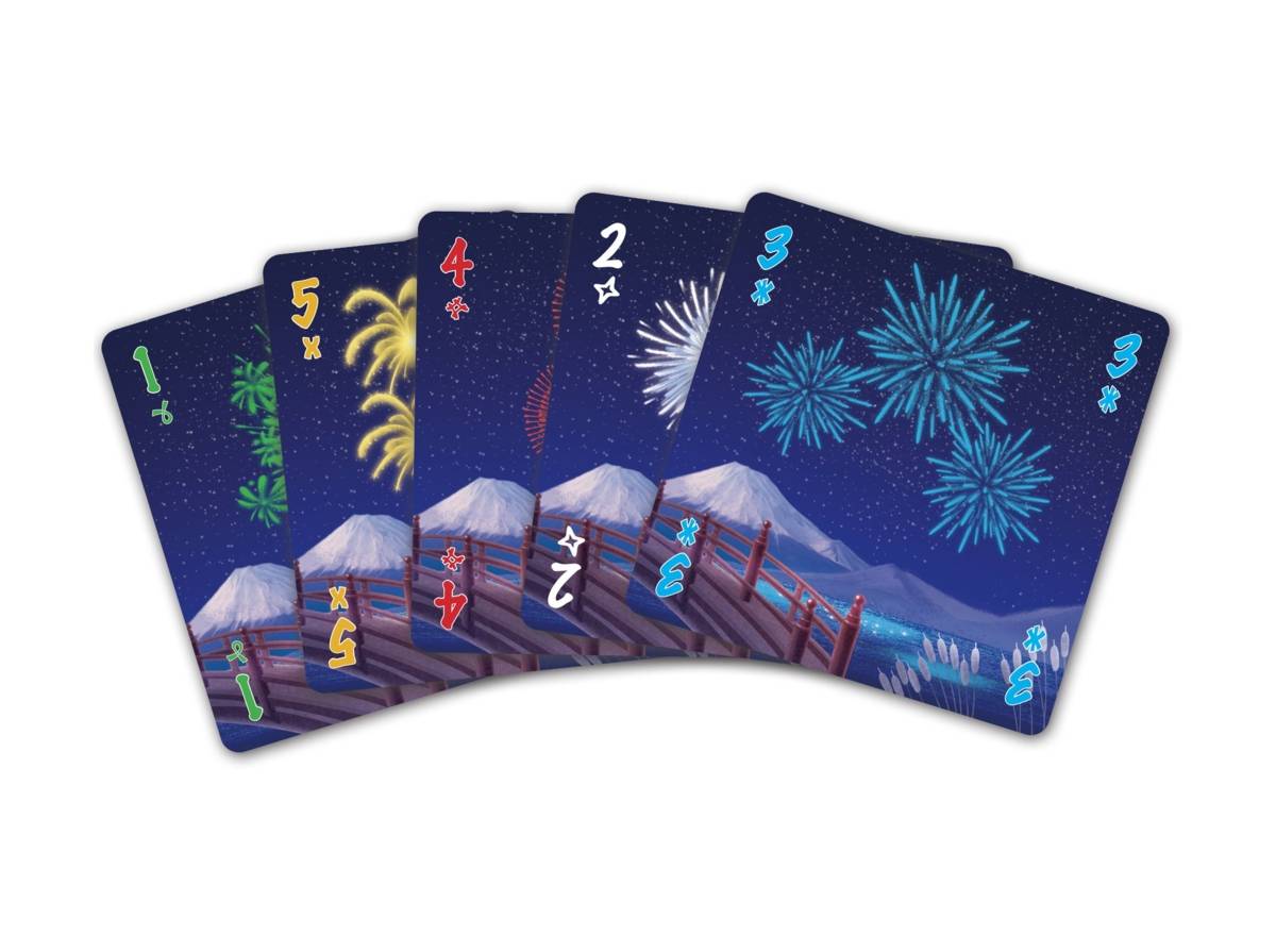 Ici on fait appel à la coopération, les joueurs personnifiant des artificiers qui doivent travailler ensemble pour concevoir le plus beau feu d’artifice possible. Au début de la partie, chacun reçoit des cartes qu’il prend en main sans en voir le contenu : chaque joueur voit les cartes de ses partenaires, mais pas les siennes. À tour de rôle, les joueurs effectuent une action, comme donner une information sur le contenu de la main d’un de ses partenaires ou jouer une carte. À l’aide des informations fournies, ils doivent jouer leurs cartes dans la meilleure séquence possible en évitant les erreurs, au risque de perdre prématurément la partie. Lorsque plus personne n’a de cartes, les joueurs comparent le score de leur séquence avec un petit tableau contenu dans la règle.
