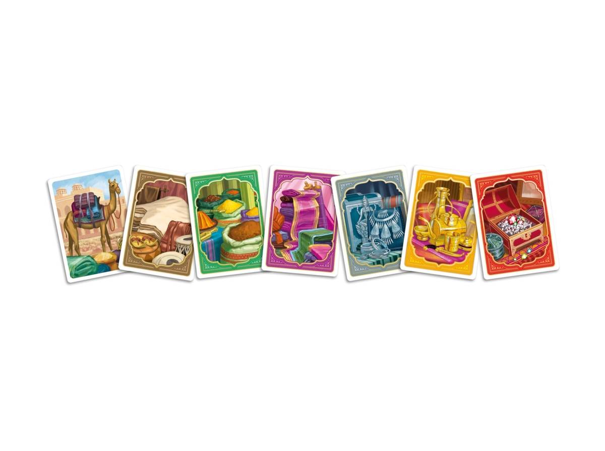 Jeu de cartes. Les joueurs doivent accumuler des cartes-marchandises, parfois en troquant des chameaux, pour ensuite les vendre au marché afin d'obtenir des jetons-marchandises au meilleur prix. Le gagnant est celui qui accumule le plus de jetons-marchandises et de chameaux.