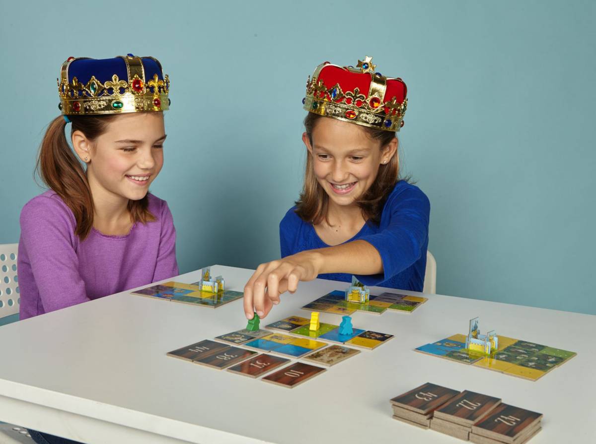 Jeu de placement de tuiles où les joueurs étendent leur royaume en acquérant des paysages et en les disposant comme des dominos. Au début, chaque participant reçoit une tuile de départ et un pion Roi. À chaque tour sont révélées des tuiles dont le nombre équivaut au nombre de joueurs. À son tour, chaque joueur prend la tuile qui l’intéresse et l’ajoute à son royaume. Ce faisant, il doit s’assurer qu’au moins une des 2 moitiés de la tuile touche un paysage identique (forêt, mer, etc.) ou la tuile de départ de son royaume. S’il ne peut placer la tuile, elle est rejetée. Puis, un nouveau tour commence où sont révélées de nouvelles tuiles. Lorsque toutes les tuiles ont été jouées, les joueurs marquent des points en fonction de la taille des paysages qui se touchent dans leur royaume. Le participant ayant le plus haut pointage gagne.
