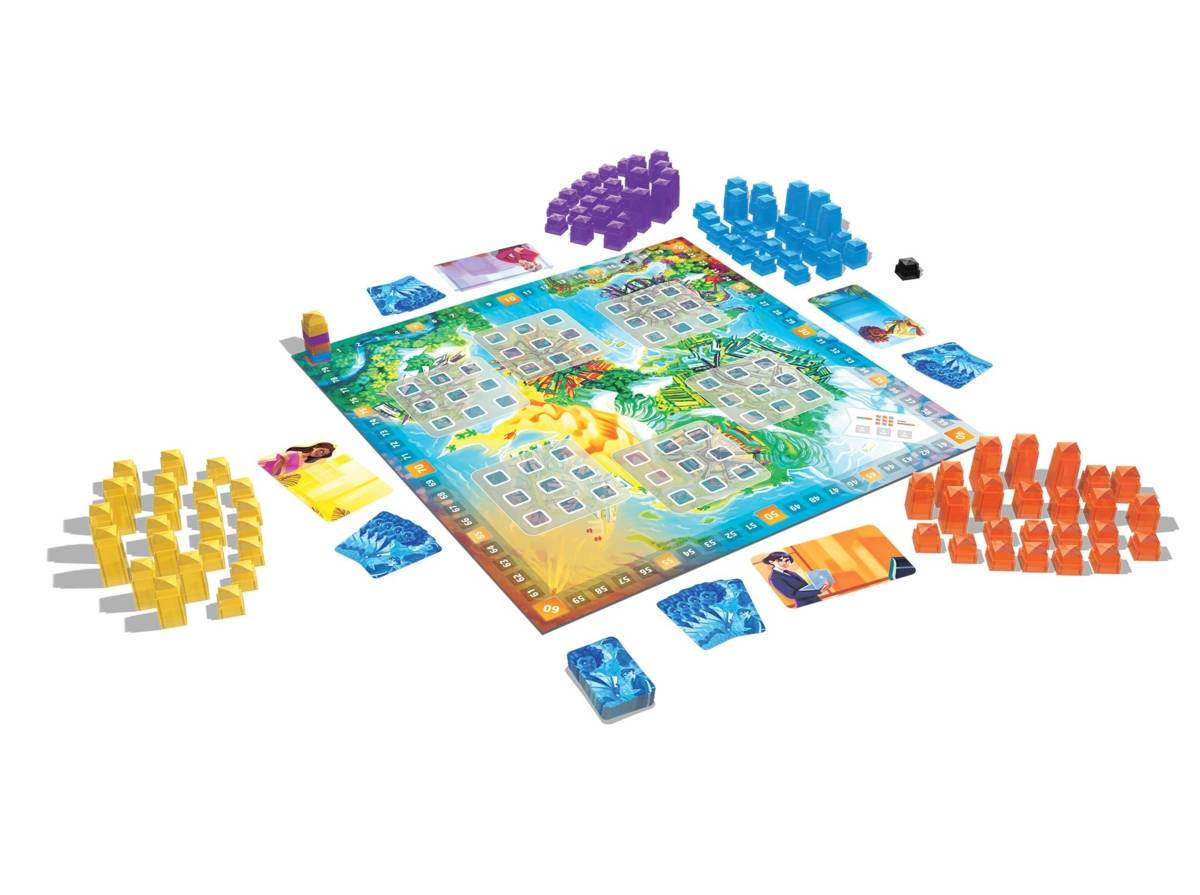 - Un plateau de jeu, 45 cartes Construction, 96 blocs de construction, 4 plateaux de jeu, 4 marqueurs de pointage et un bloc Premier joueur.