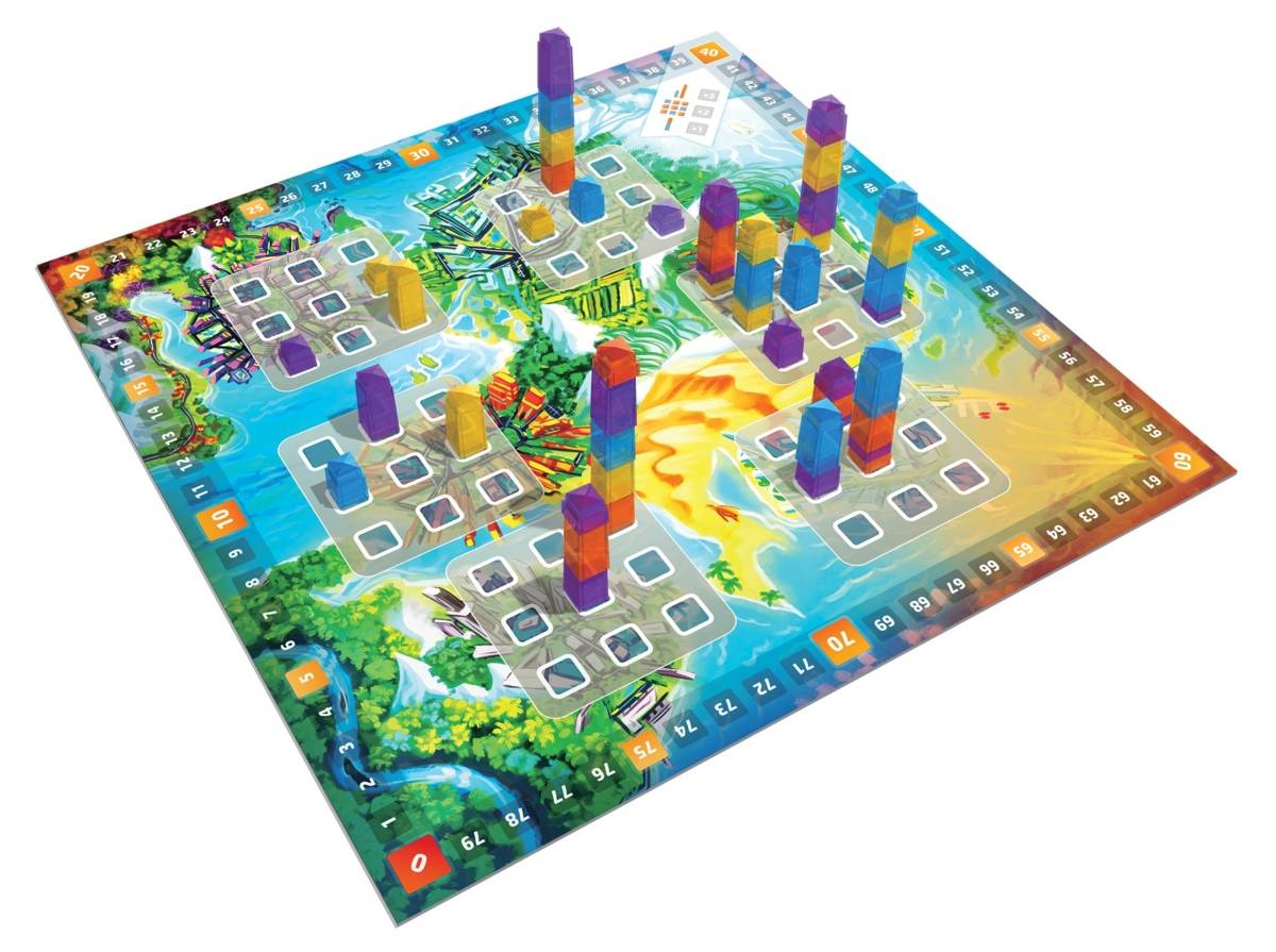 Dans ce jeu de collection, les joueurs construisent des gratte-ciel en empilant des blocs. Au début de la partie, les joueurs placent le plateau divisé en quartiers au centre de la table de façon à ce que chacun soit face à un côté différent. À chaque ronde, les joueurs reçoivent 4 cartes et choisissent 6 de leurs blocs, qu’ils placent sur leur plateau de jeu. À tour de rôle, les joueurs placent un de leurs blocs sur les emplacements indiqués sur une des cartes qu’ils ont en main. Cependant, si un joueur veut placer un bloc par-dessus une tour qui n’est pas de sa couleur, il doit s’assurer que son bloc est du même format ou plus grand que celui joué par l’adversaire. Une fois que c’est fait, le joueur pige une nouvelle carte et c’est au joueur suivant de poser un bloc. Quand tous les joueurs ont posé leurs 6 blocs, tous marquent des points en fonction du nombre de tours possédées dans chacun des quartiers, puis une nouvelle ronde démarre. Quand 6 rondes ont été jouées, le joueur qui a le plus haut pointage l’emporte.