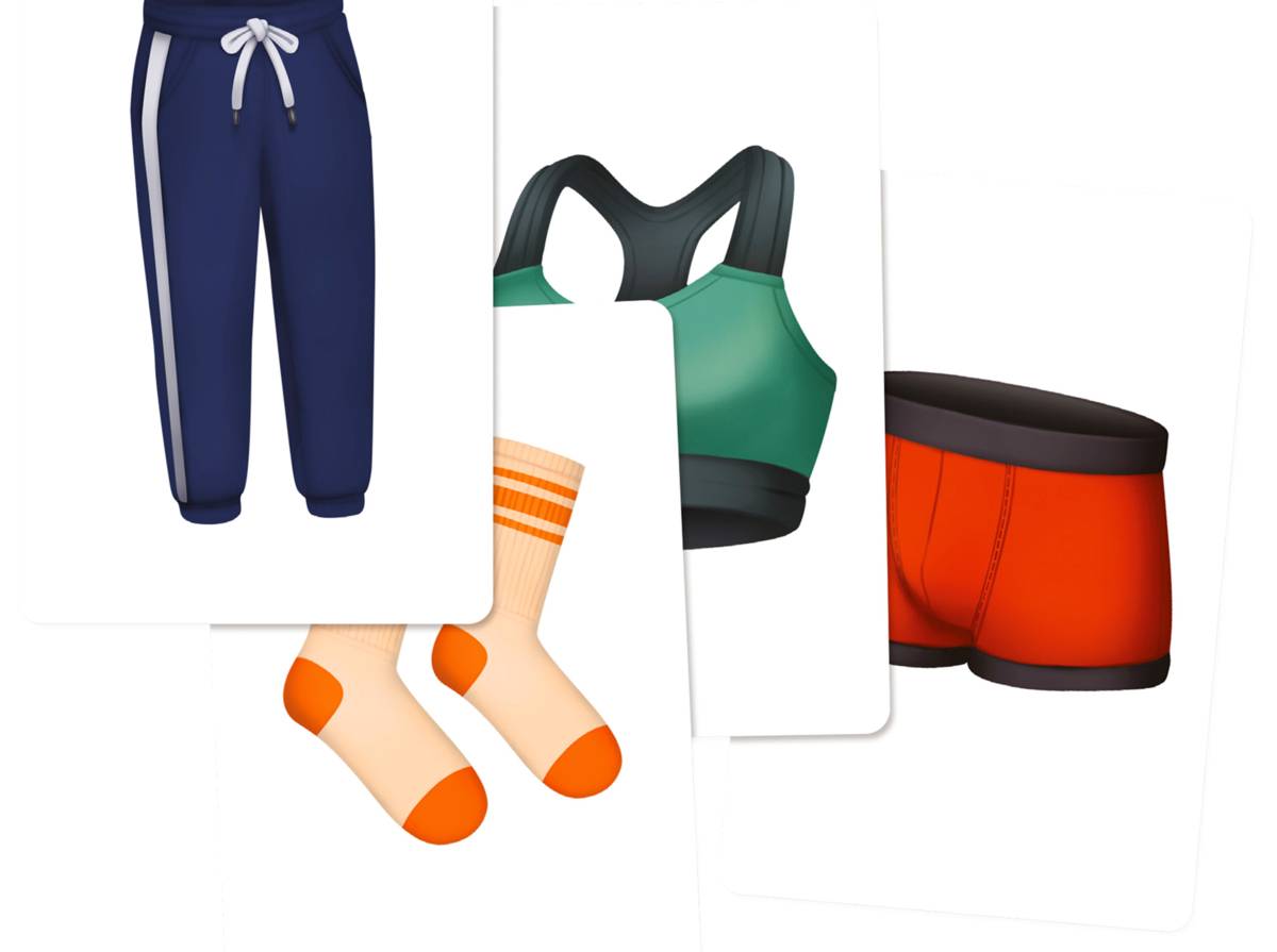 Dans ce jeu de cartes et de vitesse, les joueurs tentent de rassembler des vêtements du même type plus rapidement que leurs adversaires. Au début de la partie, chacun reçoit 6 paquets de 4 cartes Vêtements mélangés au hasard. Simultanément, les joueurs peuvent échanger une carte avec une de celles qui sont visibles au centre de la table. Dès qu’un joueur rassemble 6 séries de 4 vêtements du même type (bas, caleçon, camisole, etc.), il gagne la partie.