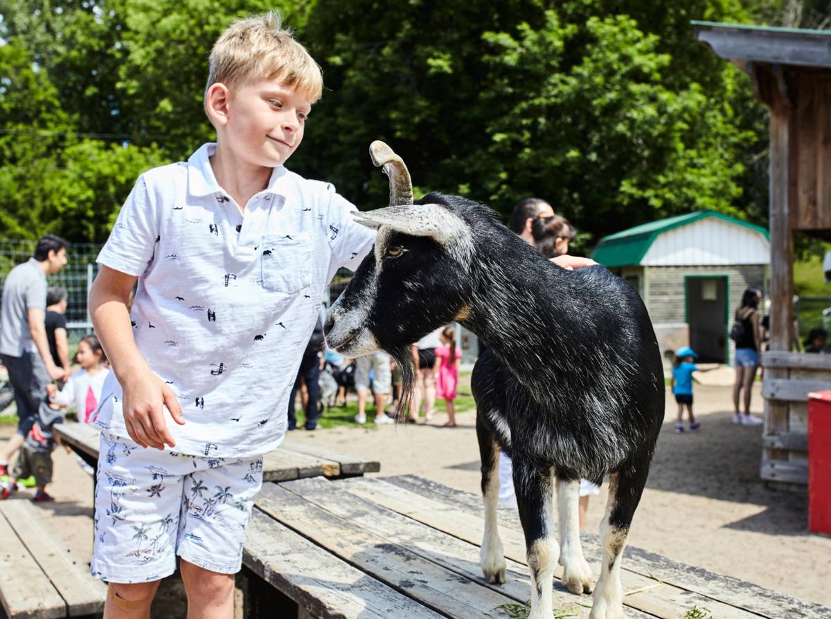Hiver: Au cœur de ce grand parc, il est possible d’observer plusieurs animaux à la fermette et divers végétaux à la serre tropicale. Pour faire rosir les joues de toute la famille, profitez des deux patinoires aménagées – dont une sur le lac –, des pistes de ski de fond et des sentiers de raquette, ou allez glisser avec des chambres à air (location d’équipements offerte).