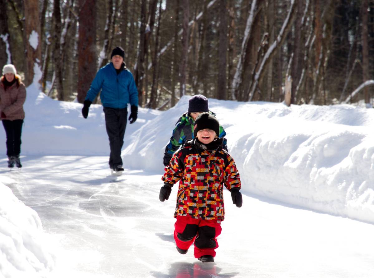 Hiver : Un sentier de glace de 2,5 km serpente à travers une forêt, et deux patinoires sont accessibles pour vos parties de hockey. À moins que vous préfériez la glissade en neige damée d’une hauteur de 6 m (20 pi)? Les amateurs de ski de fond ont le choix entre des trajets de 14 ou 30 km aller-retour. Location d’équipement offerte sur place.