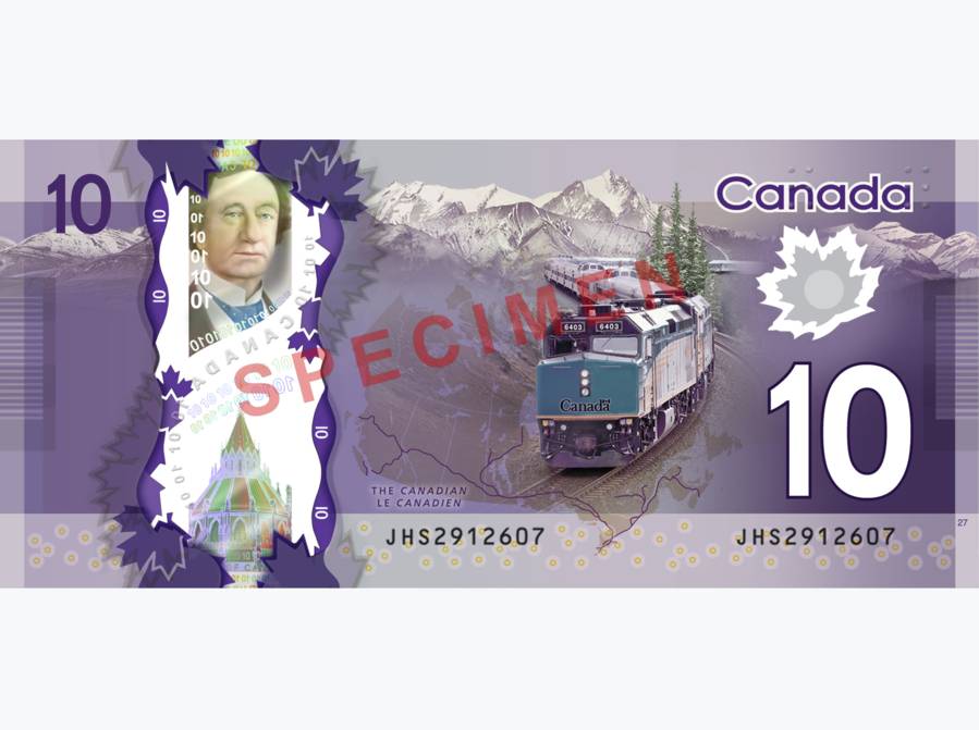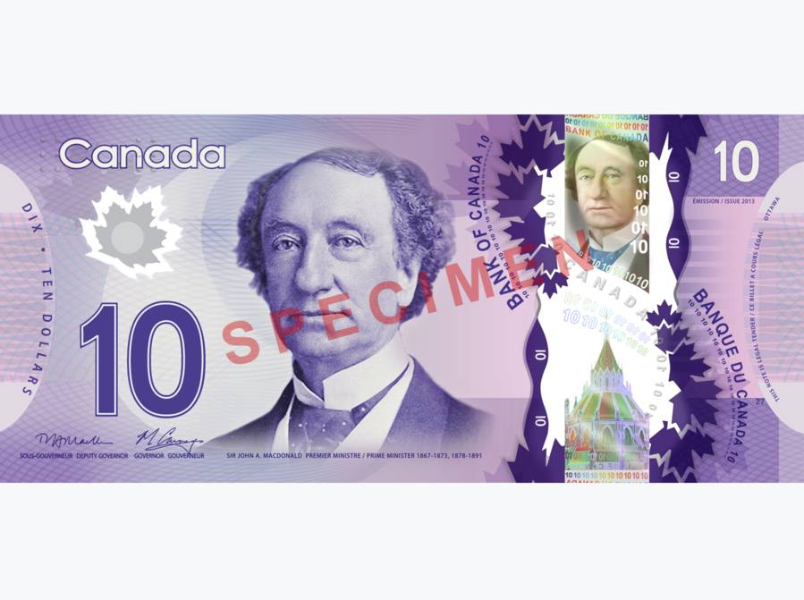 Dernier truc: passez votre doigt sur le grand chiffre qui apparaît sur les épaules du personnage historique et sur les mots «Banque du Canada»; l’encre doit avoir un relief.
