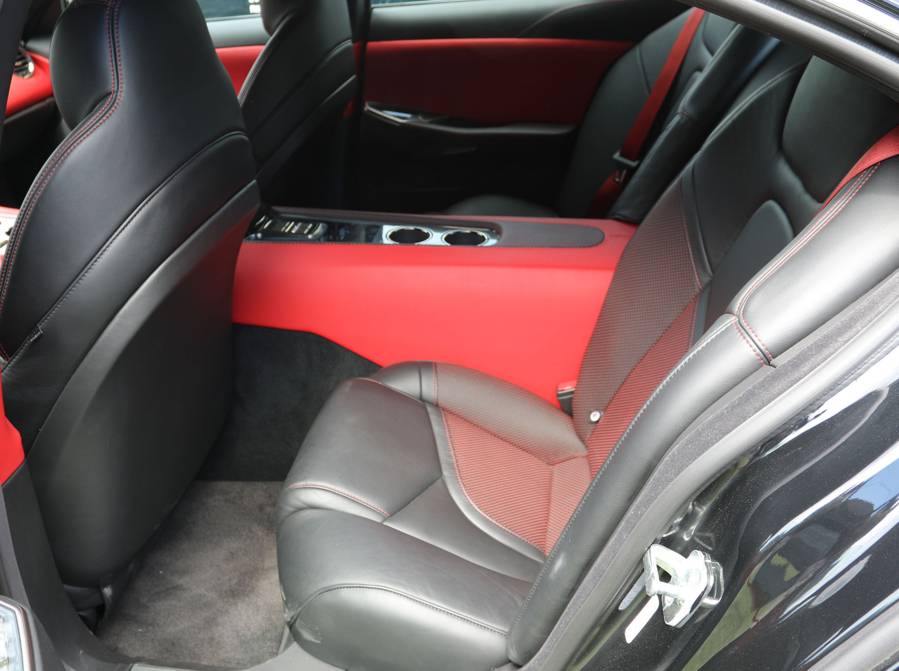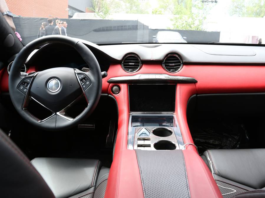 Grande berline, la Revero ne propose cependant que quatre places. En effet, la batterie coupe littéralement la voiture en deux dans le sens de la longueur, ce qui empêche d’offrir une cinquième place. Cet imposant tunnel, intégralement recouvert de cuir, entoure les occupants de l’auto, tout le contraire d’une Tesla Model S qui procure une grande sensation d’espace à bord.