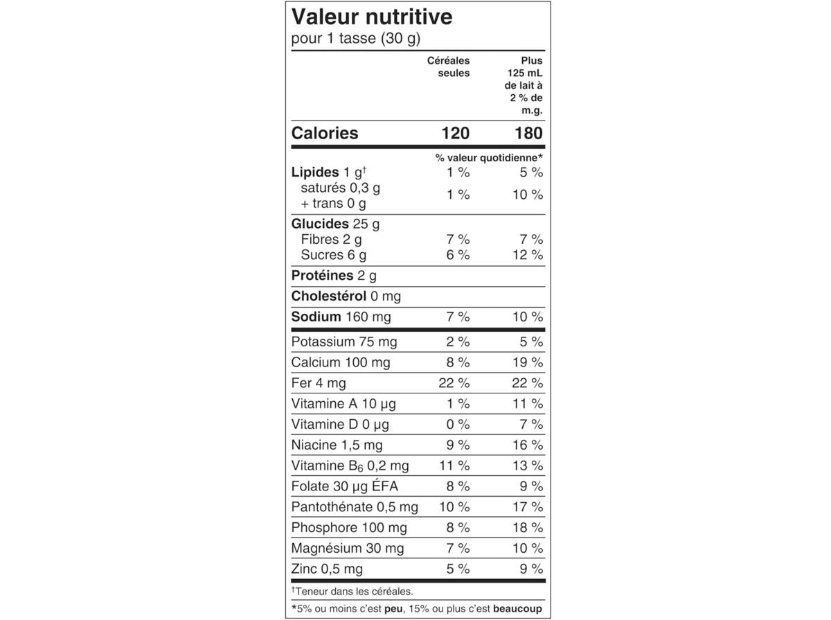- 120 calories par portion selon l'emballage
