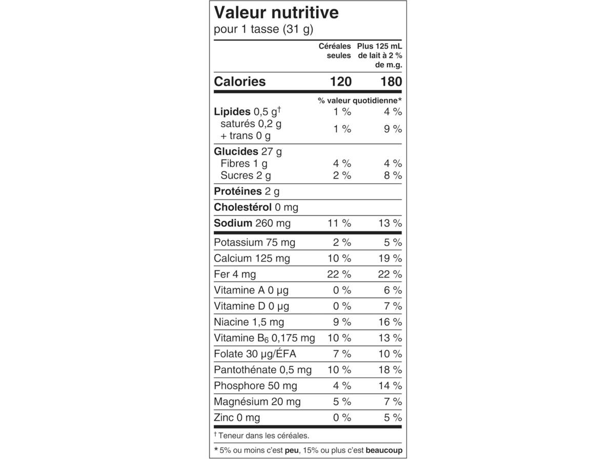 - 120 calories par portion selon l'emballage
