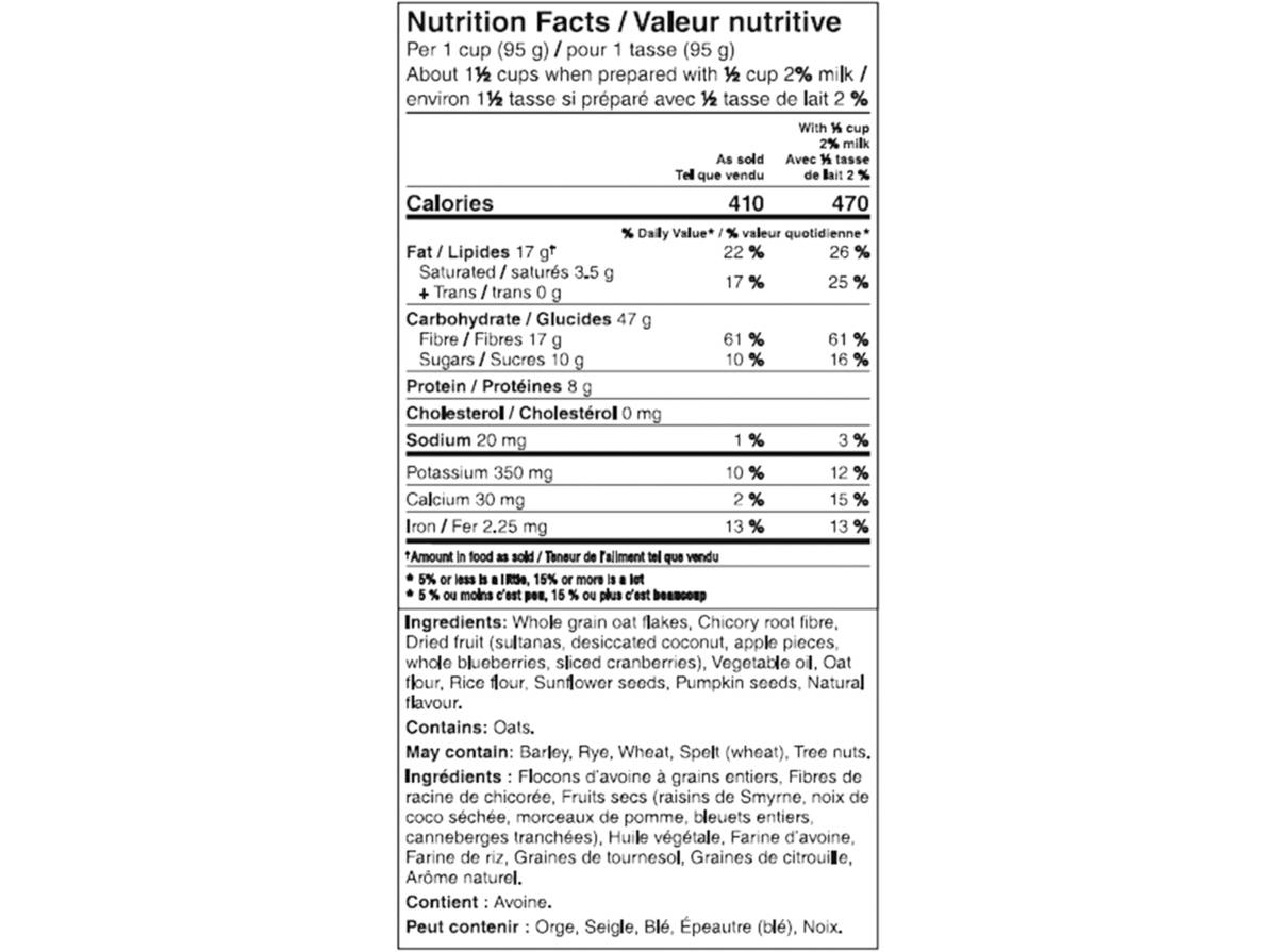 - Céréales de type granola ou muesli ou biscuits de blé filamenté