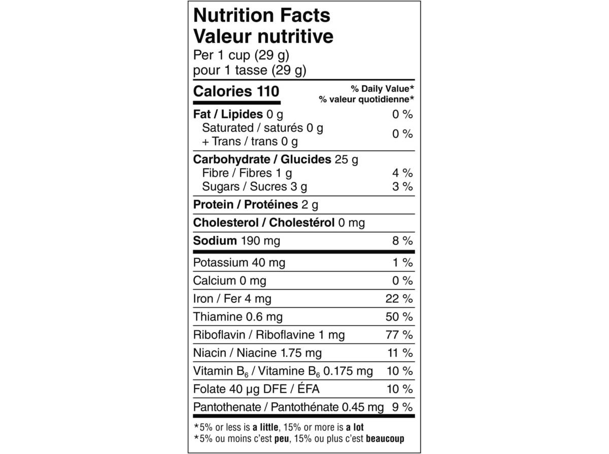 - 110 calories par portion selon l'emballage