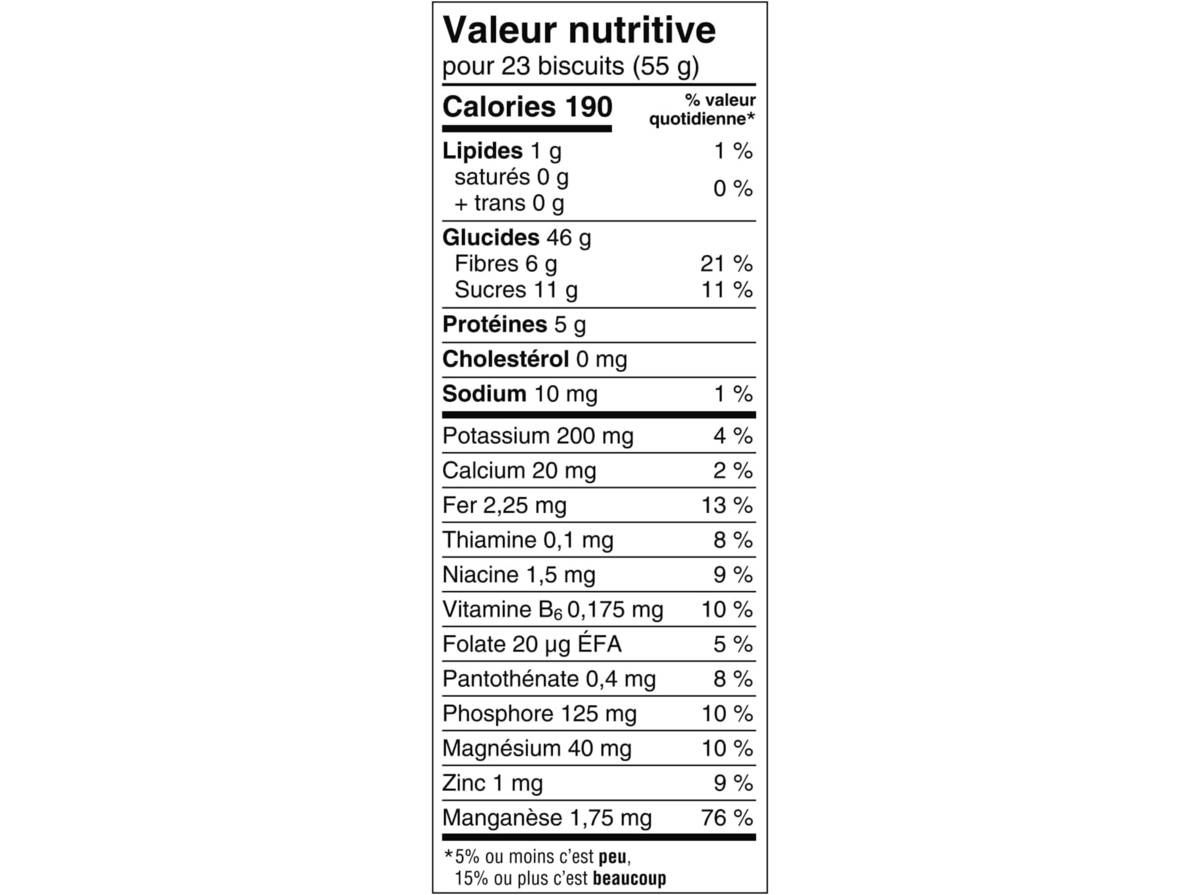 - 190 calories par portion selon l'emballage