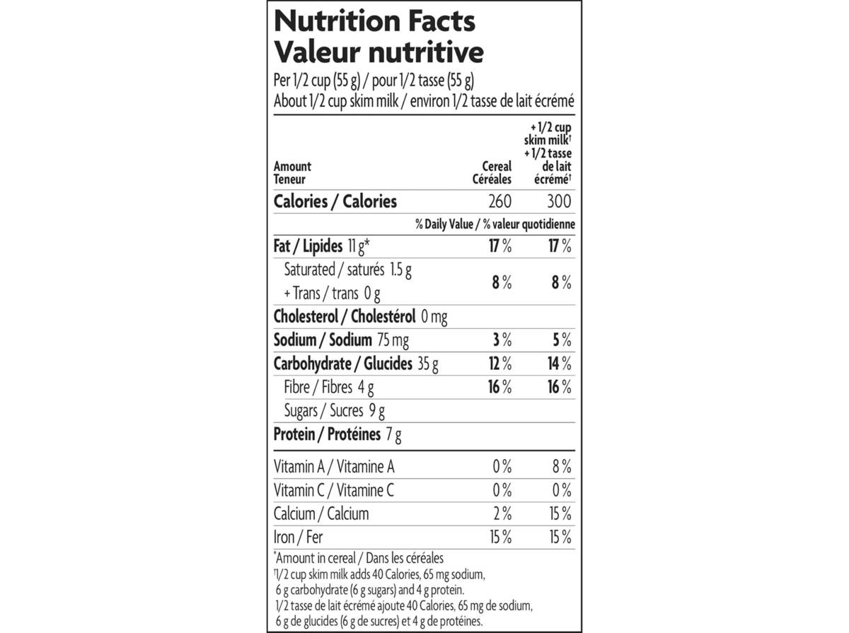 - Céréales de type granola ou muesli ou biscuits de blé filamenté