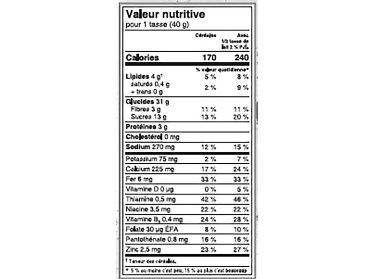- Céréales de type grains soufflés enrobés ou en flocons ou extrudées ou à haute teneur en fibres