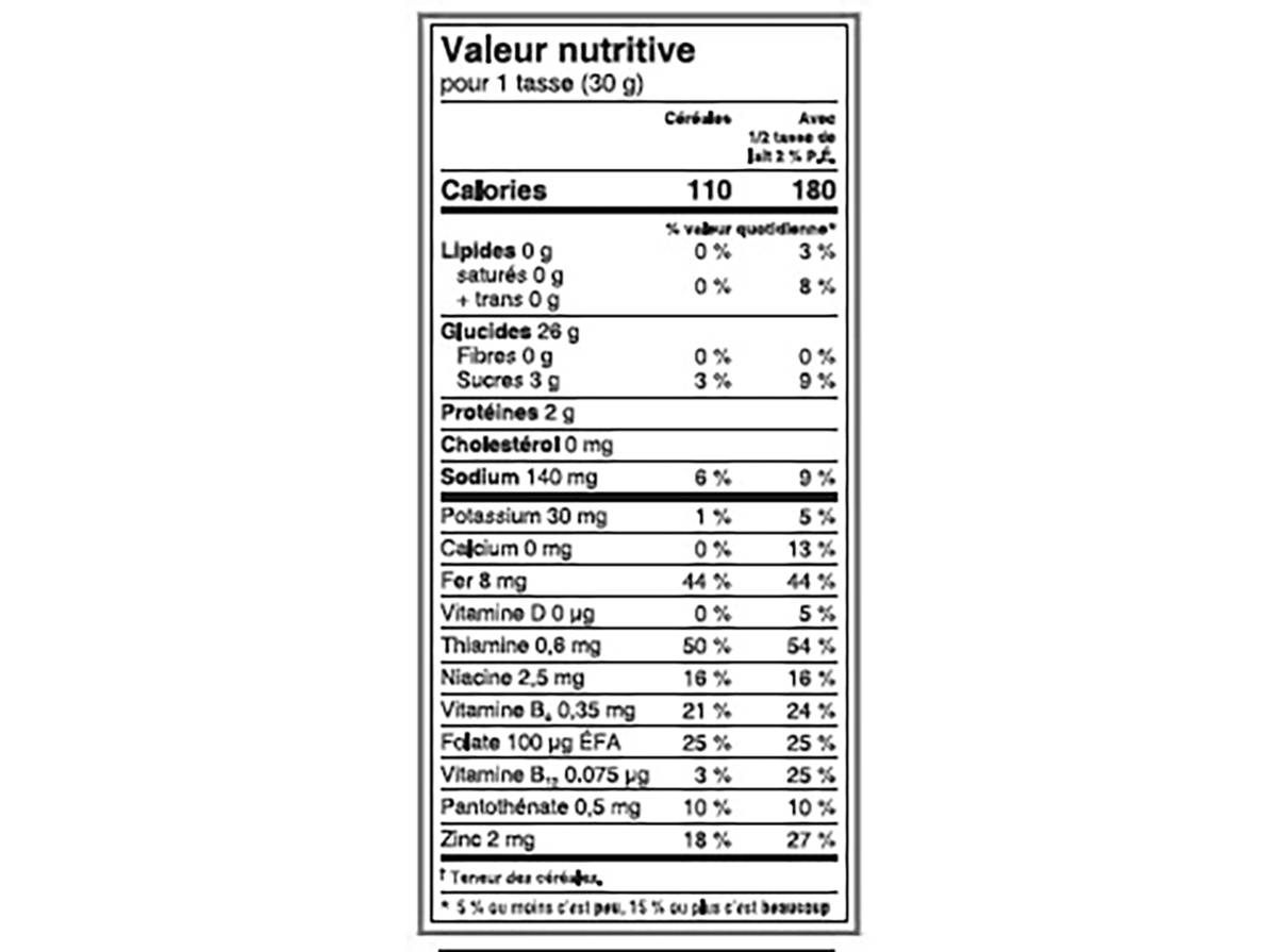 - Céréales de type grains soufflés enrobés ou en flocons ou extrudées ou à haute teneur en fibres