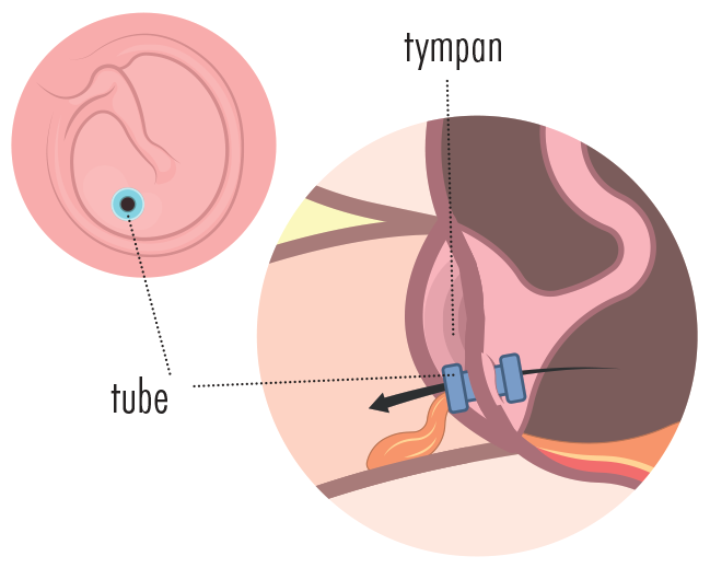 Pendant l’intervention, le chirurgien incise la membrane du tympan, par laquelle il aspire le liquide accumulé. Ensuite, il installe un petit tube de plastique, appelé drain transtympanique. Ce dernier servira à évacuer le liquide avant qu’il ne s’accumule et à équilibrer la pression en permettant le passage d’un peu d’air d’un bout à l’autre du tympan. Ainsi, lors d’un rhume, le liquide va s’écouler par le tube plutôt que de demeurer derrière le tympan et de créer de la douleur.