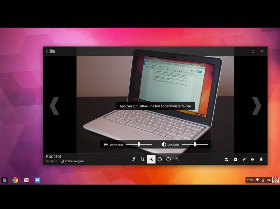 Cela dit, Chrome OS permet d’accéder à du contenu multimédia enregistré sur le disque dur, mais il le fait plutôt mal. Le lecteur multimédia qui permet de lire de la musique et des vidéos est souvent d’une simplicité désarmante (on ne peut pas, par exemple, gérer une bibliothèque de fichiers musicaux) et l’éditeur de photos n’offre qu’une poignée de fonctionnalités.