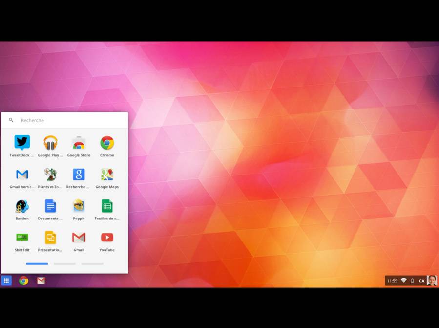 Un Chromebook est un ordinateur équipé de Chrome OS, un système dérivé de Linux et dont l’interface correspond plus ou moins au navigateur Chrome. Ici, pratiquement tout doit donc être effectué à l’intérieur du fureteur de Google. Les services en ligne remplacent les applications traditionnelles, et le stockage local est pratiquement inexistant, puisque tous les documents sont sauvegardés en ligne. D’ailleurs, chaque ordinateur est offert avec 100 Go d’espace de stockage Google Drive pour deux ans.